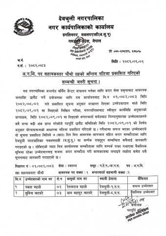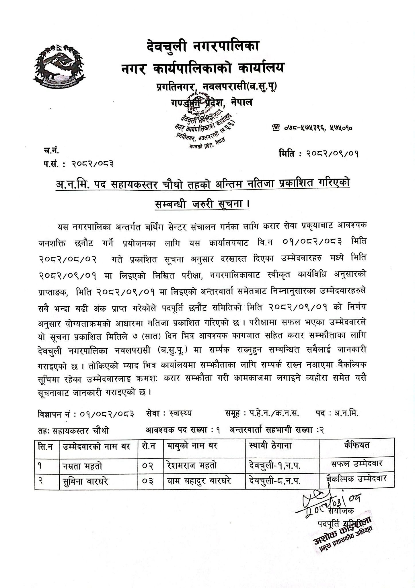 अ न मि सहायकस्तर चौथा तहको अन्तिम नतिजा प्रकाशित गरिएको सम्बन्धी जरुरी सूचना