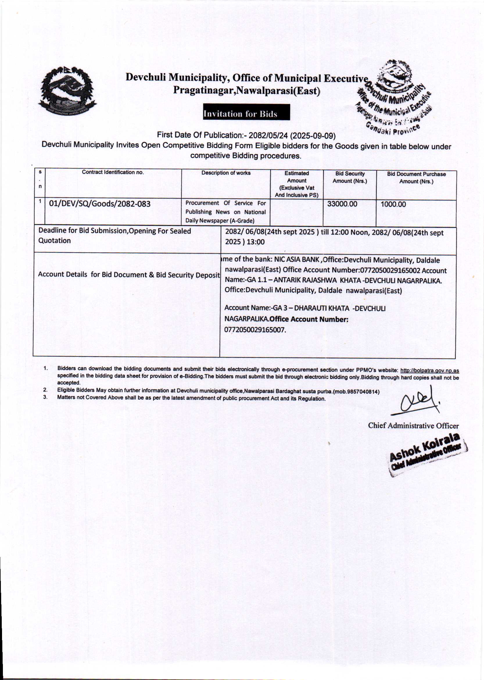 बाेलपत्र आव्हान सम्बनी सूचना ।