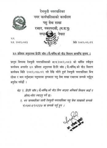 ५० प्रतिशत अनुदानमा हिउँदे घाँस बिऊ वितरण सम्बन्धि सूचना ।