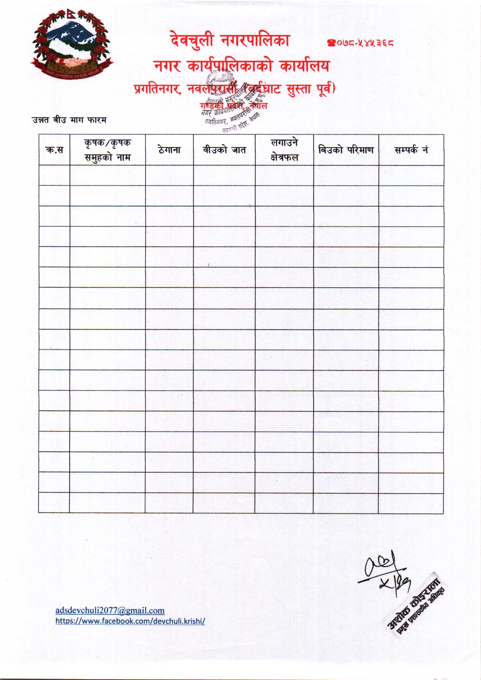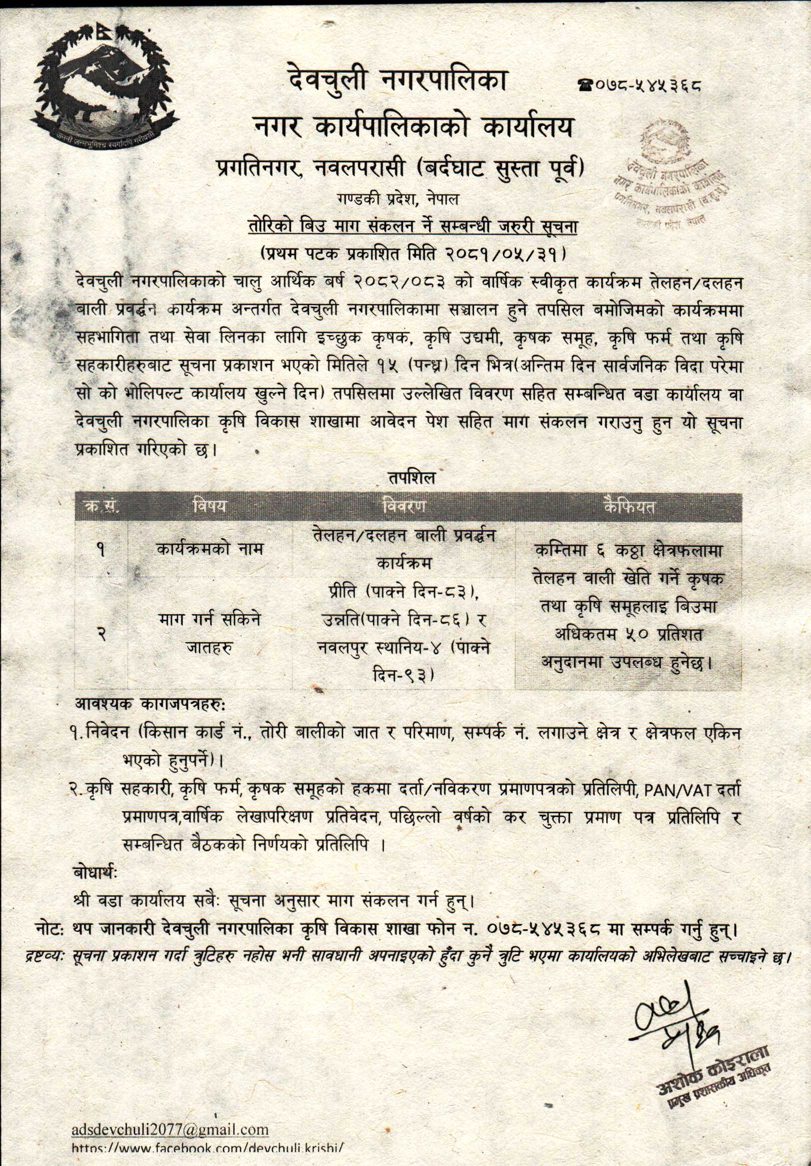 ताेरिकाे र गँहुकाे उन्नत विउ माग गर्ने सम्बन्धमा ।