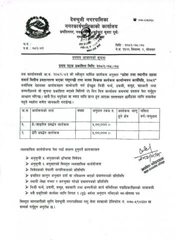 प्रस्ताव आव्हानकाे सूचना ।