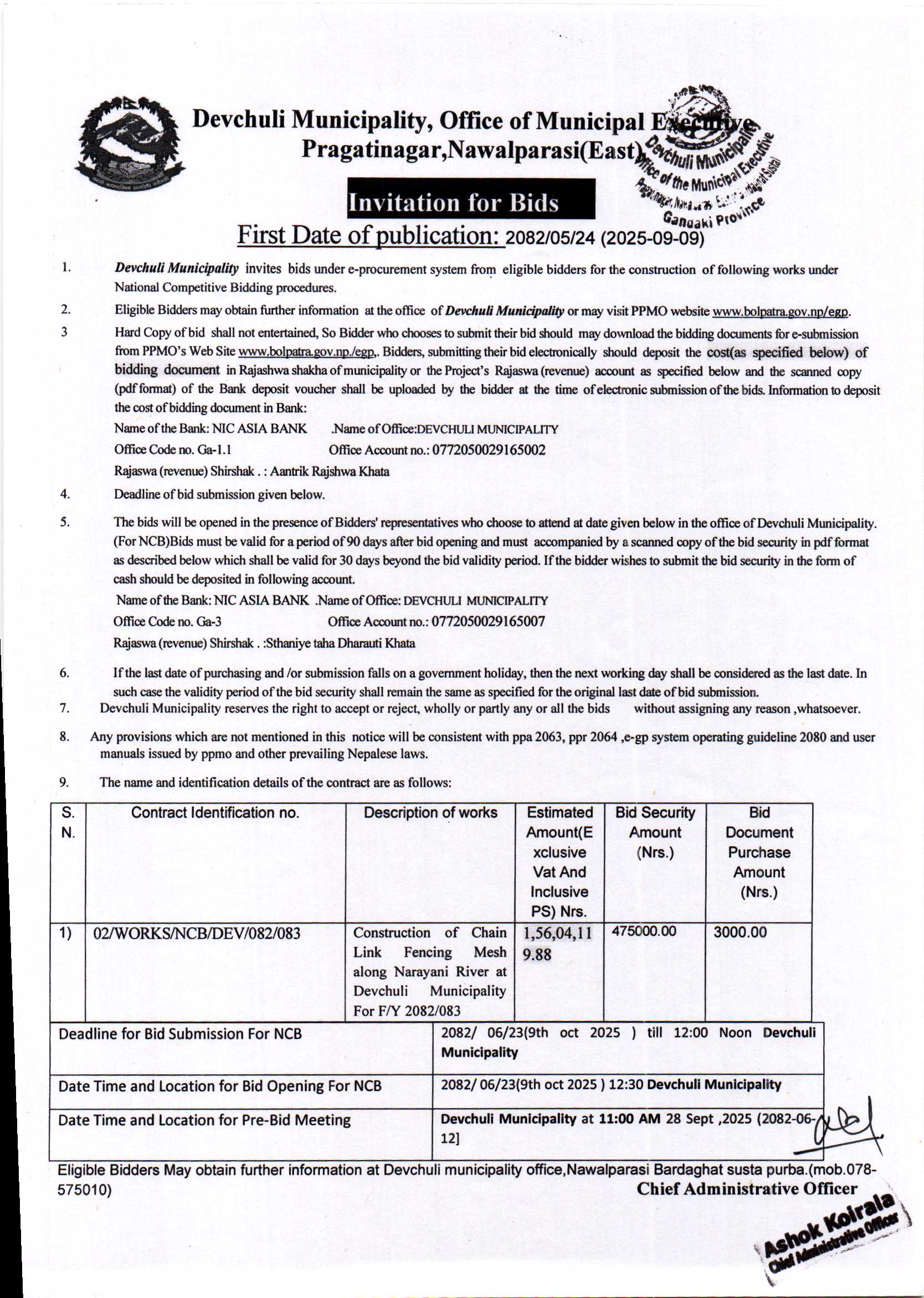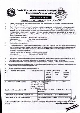 बाेलपत्र आव्हान सम्बन्धी सूचना ।