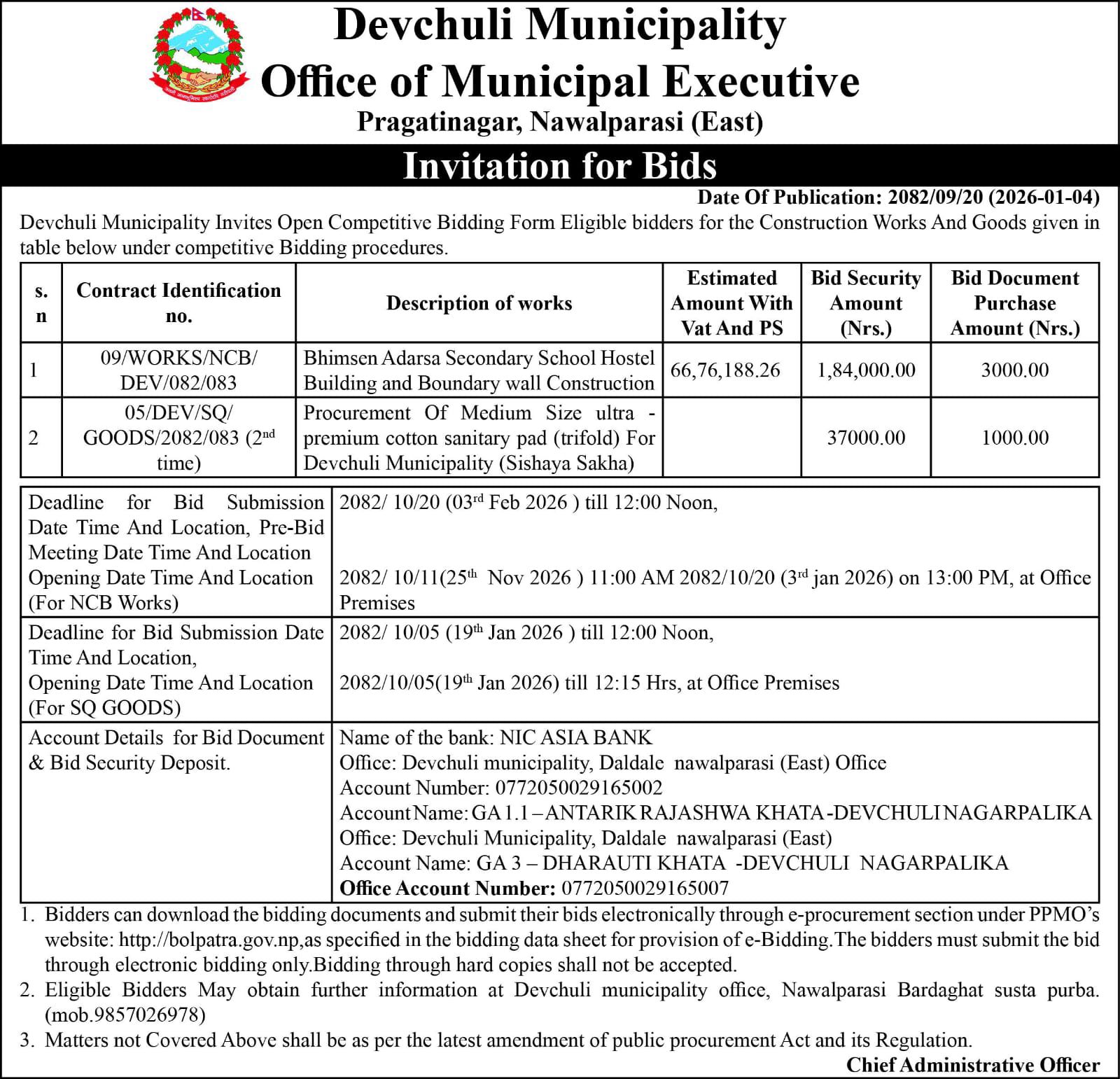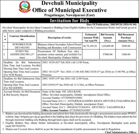 बोलपत्र आह्वान सम्बन्धि सूचना ।